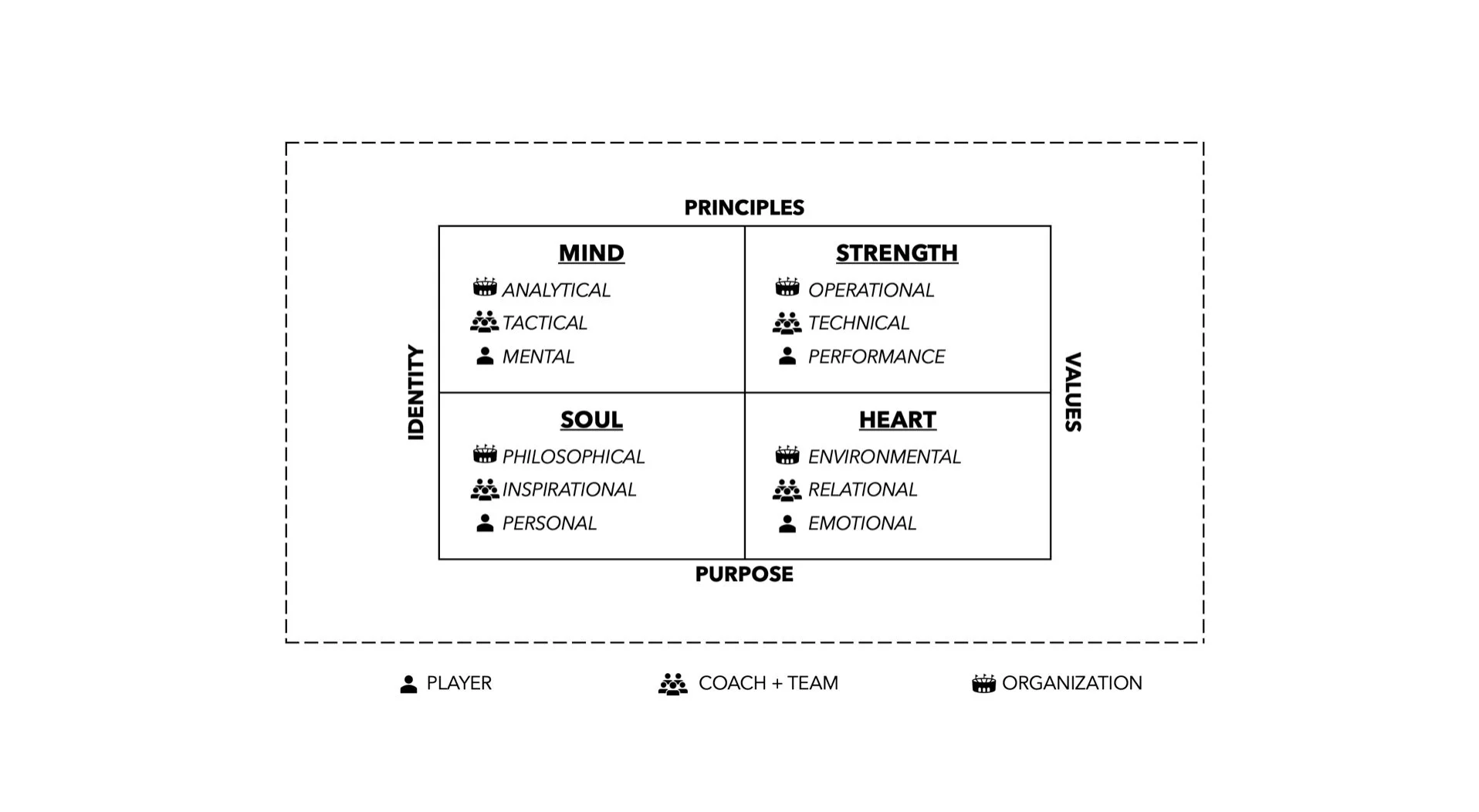 An integrated and holistic perspective is key for athletes to reach their performance potential. This resource helps define, refine, or affirm a core performance framework so the athlete can in turn, demonstrate commitment, accountability, and responsibility for their athletic journey.